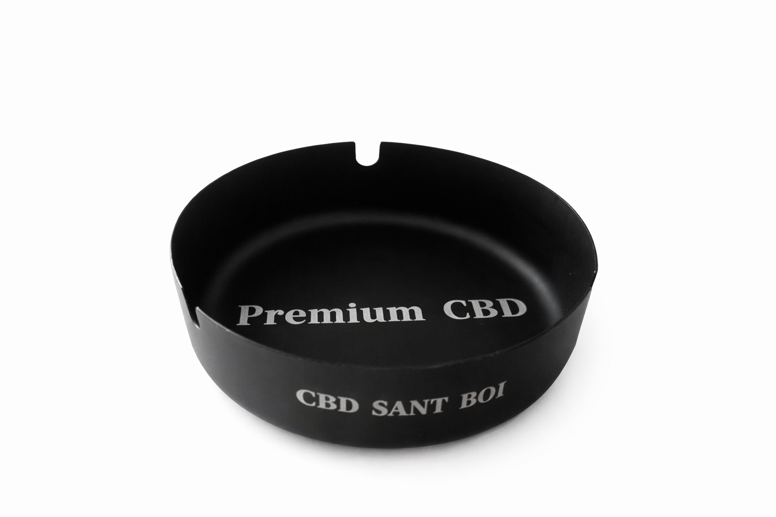 Dale un toque de estilo a tus momentos de relax con el cenicero negro de aluminio CBD Sant Boi 🌿. Su diseño moderno y minimalista, junto con el grabado del logo oficial de la tienda, lo convierte en un accesorio práctico y representativo de la marca.